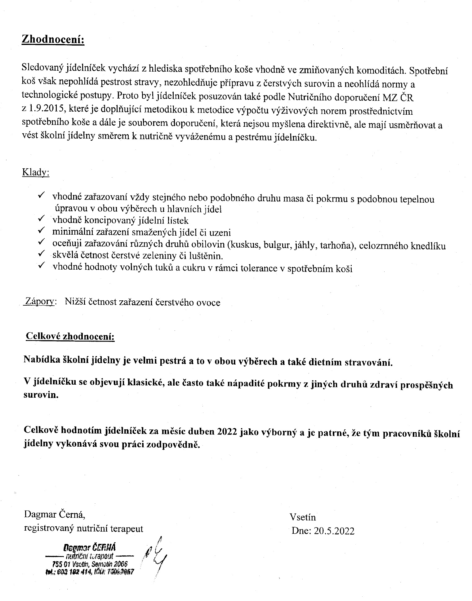 Hodnocení jídelníčku 04-2022