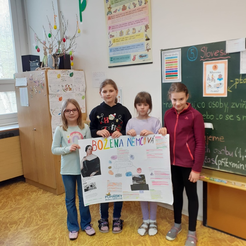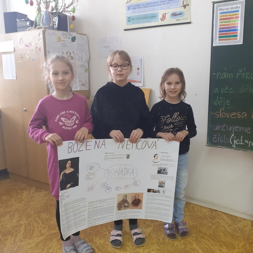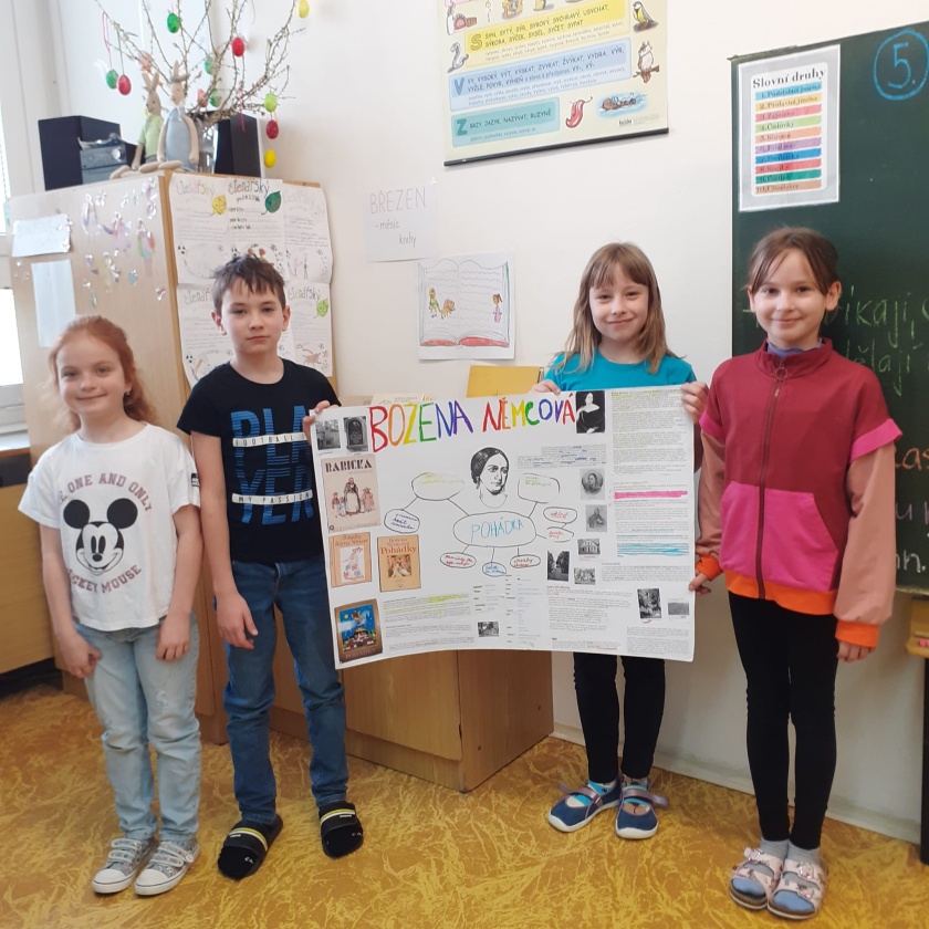 V rámci „března – měsíce knihy“ jsme se s žáky zaměřili na naši významnou autorku – Boženu Němcovou. Celý tento měsíc jsme v hodinách literární výchovy četli, poslouchali, vyhledávali a pracovali s informacemi, viděli spoustu ukázek zfilmovaných děl atd.