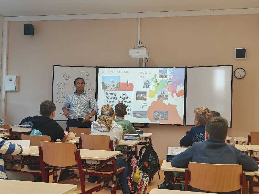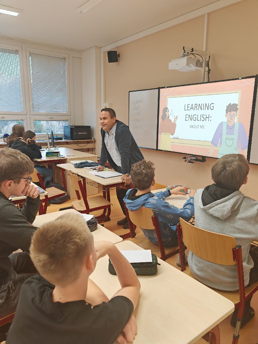 Celý prosinec, přesně 32 vyučovacích hodin, strávili žáci převážně druhého stupně výukou s rodilým mluvčím, a to díky projektu financovaném Evropskou unií. Paul Akwei, původem z Velké Británie, si připravil několik prezentací, na základě kterých se žáci dozvěděli nejen zajímavosti o jeho životě, cestování a rodině, ale zopakovali si i různé gramatické jevy. Paul svým pozitivním přístupem a entuziasmem dokázal vtáhnout do konverzace i ty, kteří se v hodinách moc neprojevují... Proto jsme velmi rádi, že spolupráce s ním bude pravidelně pokračovat i v následujícím pololetí a snad i školním roce! Všichni se moc těšíme!