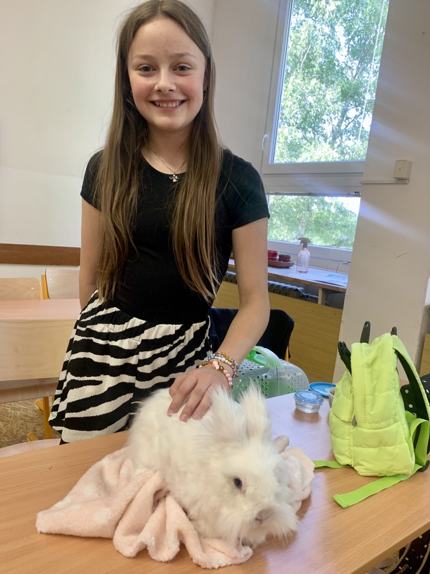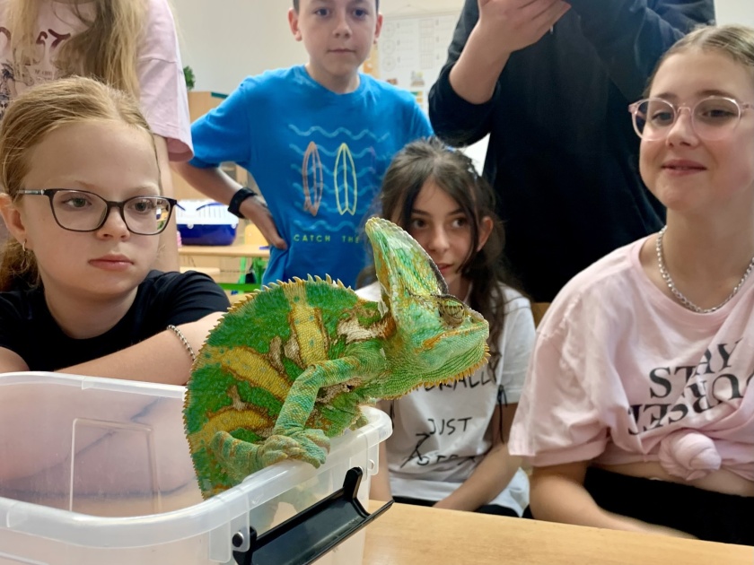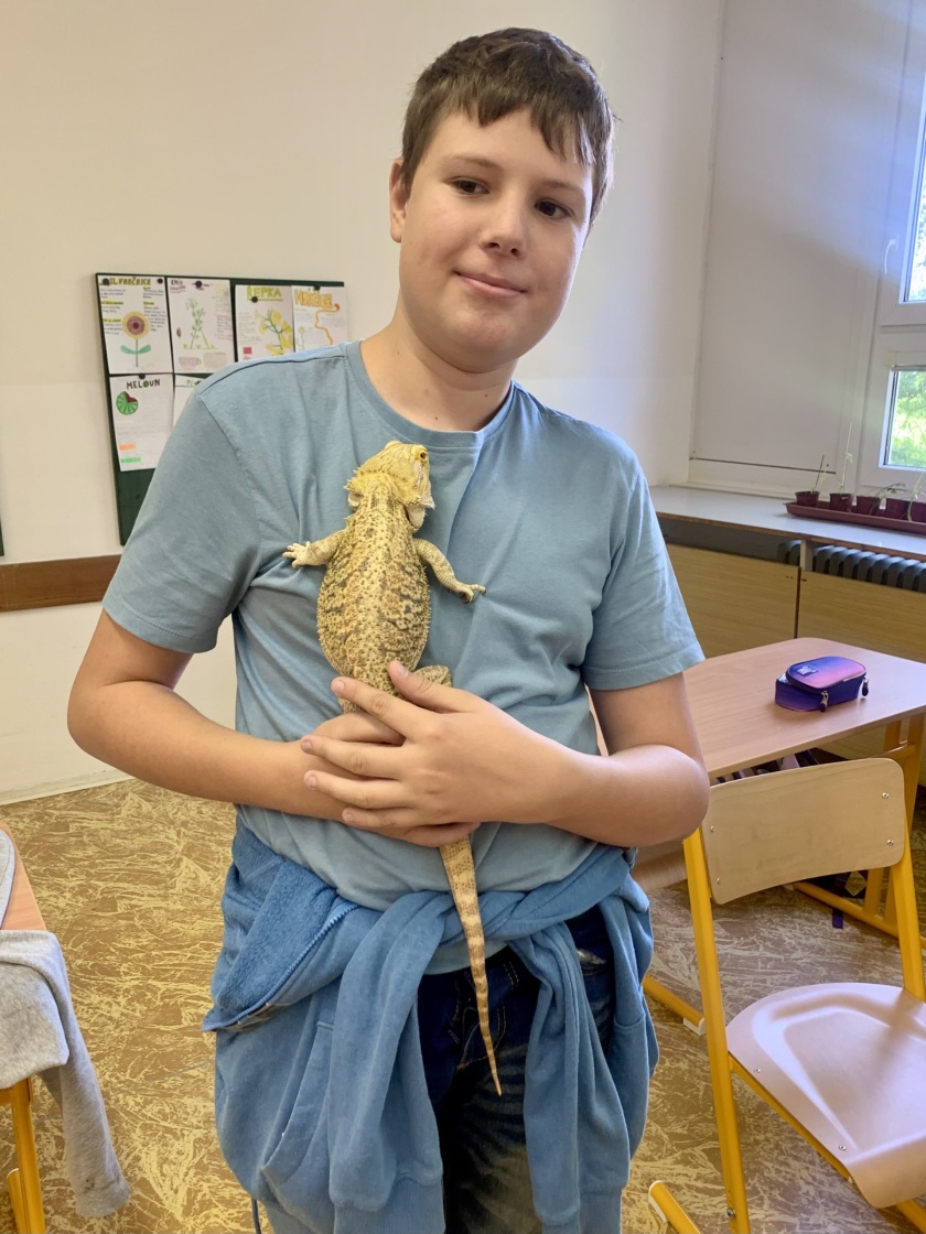 Ve třídách se tak objevili králíci, křečci, strašilky, agama vousatá, chameleon i želva. Každý žák, který svého mazlíčka přinesl, měl za úkol stručně představit zvíře, popsat jeho životní potřeby a péči, kterou vyžaduje. Dozvěděli jsme se například, čím se jednotlivá zvířata krmí, jaké mají nároky na prostředí nebo co obnáší každodenní starostlivost.