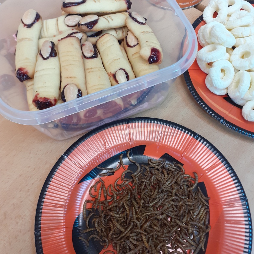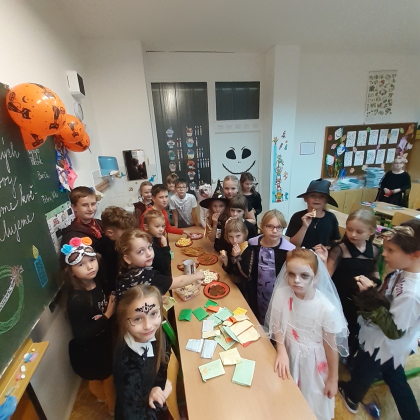 V rámci tohoto projektového dne jsme v českém jazyce pracovali s tematicky zaměřeným textem, v matematice si zase zahráli na lovce dýní, luštili, hádali a nechybělo i výborné pohoštění. Ochotné a nápadité maminky nám dokonce upekly linecké prsty, ochutnali jsme sušené červíky a jiné speciality.