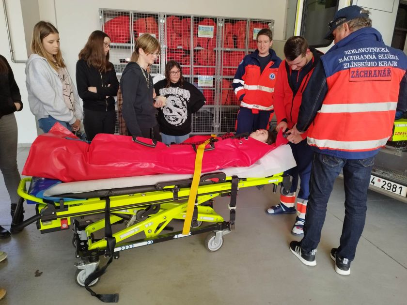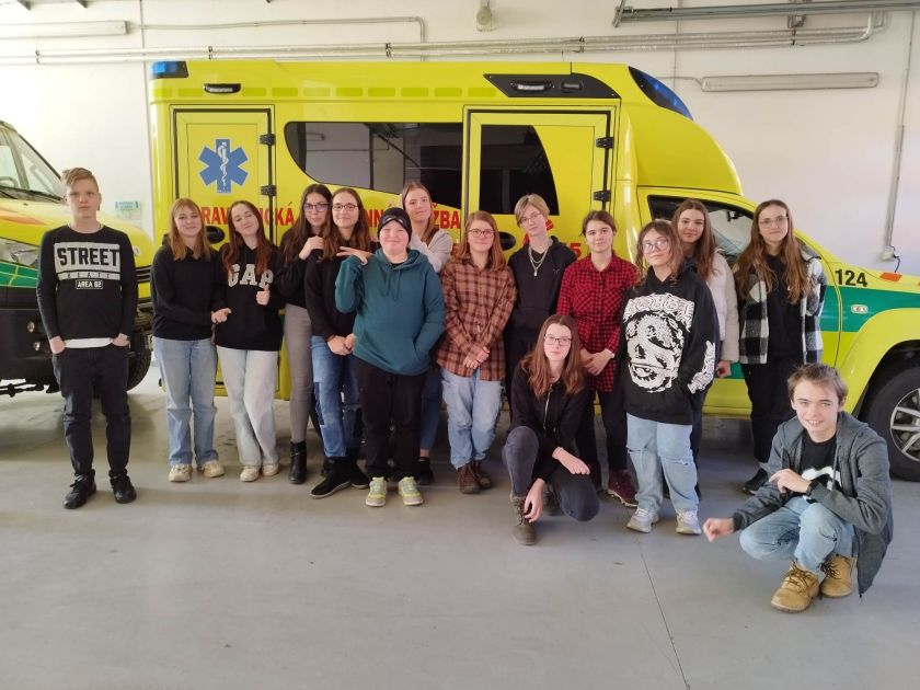 V úterý 28. 2. byl pro některé žáky den, na který se už měsíc těšili. Uskutečnila se plánovaná exkurze na naši Zlínskou záchrannou službu. Plánovaná návštěva se trochu protáhla, protože žáci se ptali na spoustu věcí a chtěli si všechno vyzkoušet. Prošli jsme si různé druhy aut, kterými záchranáři mohou jezdit v různých situacích, a dokonce jsme si nechali natočit základní EKG a změřit hladinu cukru v krvi. V závěru exkurze jsme se mohli podívat do samotného srdce záchranné služby – dispečink. Zde jsme jako myšky tiše naslouchali, když dispečerky hovořily s posádkami a „klienty“. Viděli jsme veškeré počítačové vybavení a nasáli jsme atmosféru místa, kde se hraje mnohdy doslova o čas. Čas, který je potřeba k záchraně lidského života.