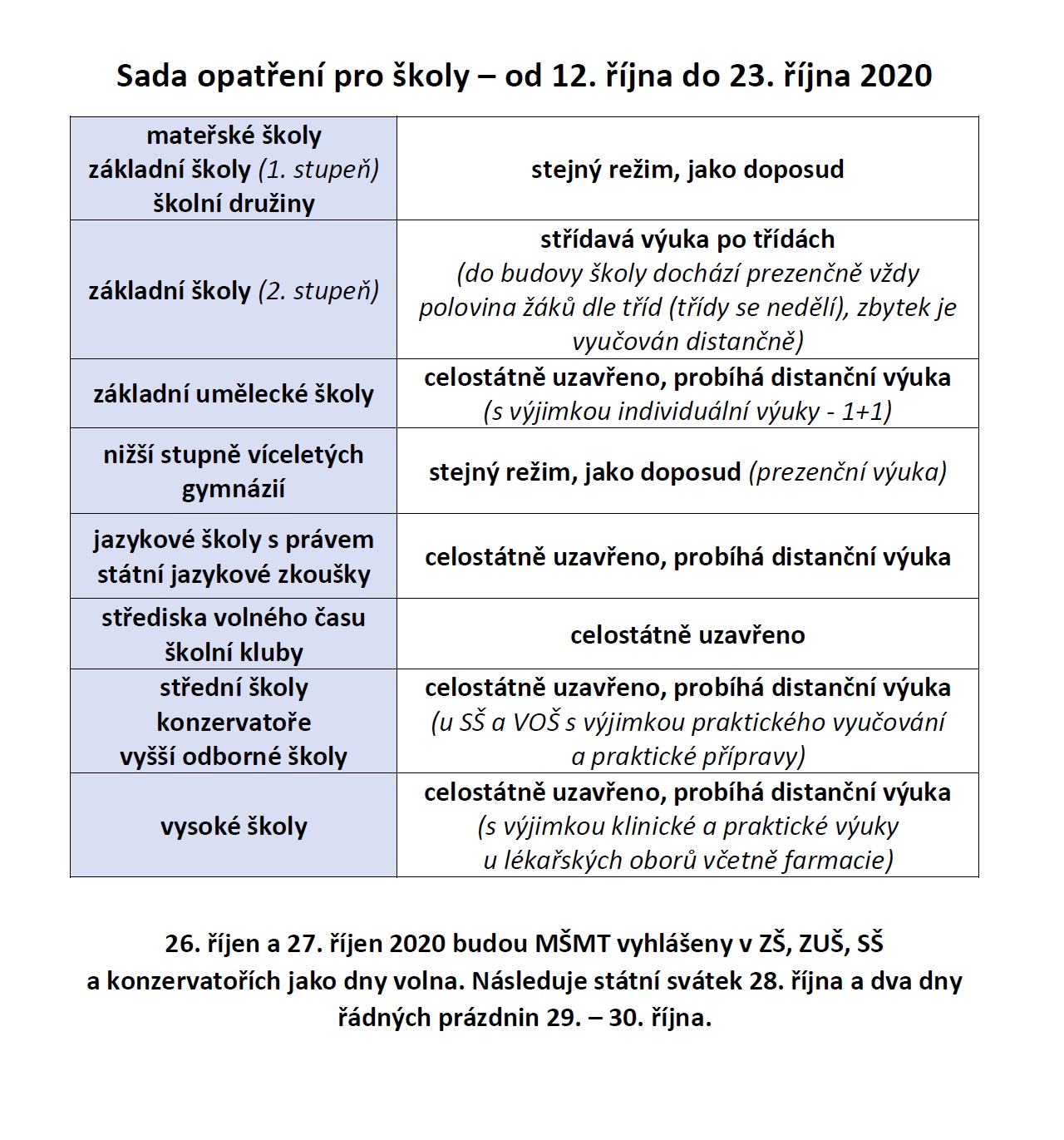 Opatření pro školy