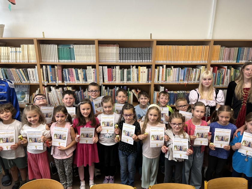 Na závěr školního roku 2023/2024 bych ráda za celou školu pogratulovala všem žákům prvních ročníků, kteří složili dne 28. 5. 2024 svou první životní zkoušku a rozšířili řady našich čtenářů. V tento slavnostní den všechny děti zvládly ukázkově přečíst svůj text, za odměnu byly naším pohádkovým králem a jeho družinou ohodnoceny, odměněny a slavnostně pasovány na čtenáře. Doufáme, že knihy Vás budou provázet životem a budete číst se stejným zaujetím a nadšením jako v první třídě i v dalších letech, mnoho úspěchů