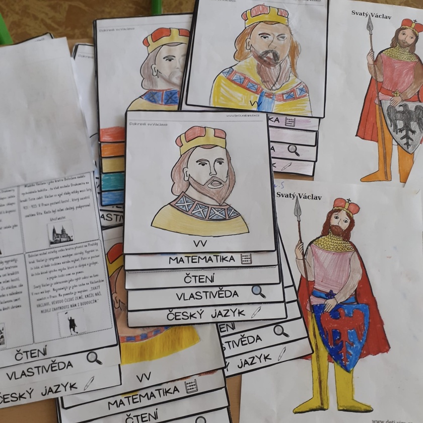 Využili jsme také mezipředmětových vztahů a téma tohoto státního svátku se prolínalo i v ostatních předmětech. Ve vlastivědě jsme zjišťovali, kde se nacházejí kostely zasvěcené sv. Václavovi nebo kde je Stará Boleslav. V českém jazyce jsme pak pracovali s textem, v matematice počítali s významnými daty. A vitráž s tímto patronem pak nechyběla v tvořivých činnostech.