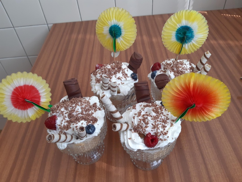 Parna jsou tu, je třeba se zchladit! Na závěr roku v hodinách ruského jazyka ruská zmrzlina! A komu se z našich žáků povedl „nejnej“ pohár? Soutěžili jsme v 7., 8. a 9. ročníku. Žáci si přinesli ovoce, zmrzlinu, šlehačku, oplatky, trubičky, zdobení a dali se do práce. A výsledek? Hmm, až oči přechází, a ta chuť! Ох, какое мороженое!! Ale honem, honem, než se nám to rozpustí, šup s tím do pusy. No, posuďte sami, který zmrzlinový pohár vás na níže uvedených fotkách nejvíce láká? Výsledek se dozvíte v pondělním rozhlase. Všem přejeme krásné a sladké prázdniny!