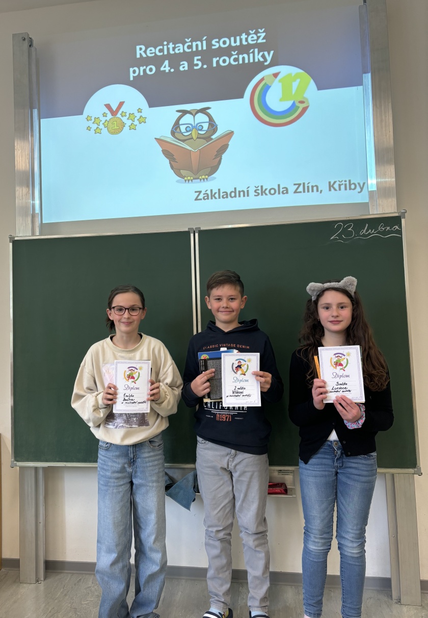 V úterý 23.4.2024 proběhlo školní kolo recitační soutěže pro 4. a 5. ročníky. Z každé třídy byli vybráni dva žáci a připravili si krásné básničky. Mnohé byly dlouhé a těžké. Naučit se je říkat vyžaduje hodně trénování. Ale to nestačí! Recitace obnáší mnohem víc – cit, pochopení básně a vyjádření jejího náboje. To je mnohem těžší, ale všem se to však krásně povedlo. Gratulujeme a všem moc děkujeme za účast!