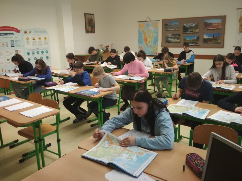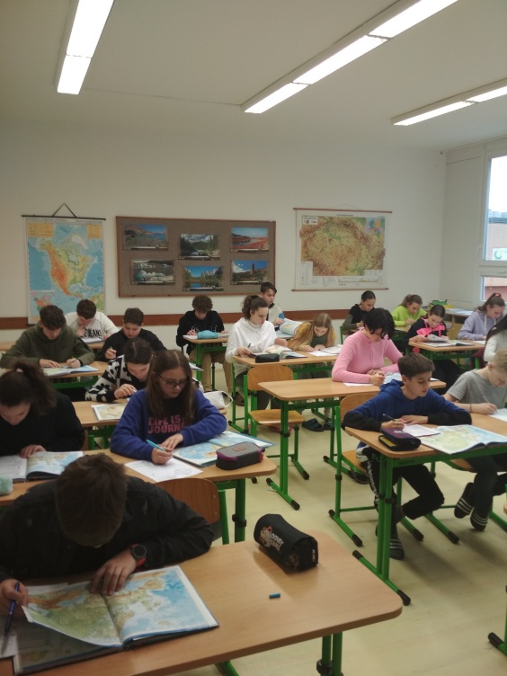 Žáci absolvovali náročný test zeměpisných znalostí, na jehož vypracování měli 50 minut.