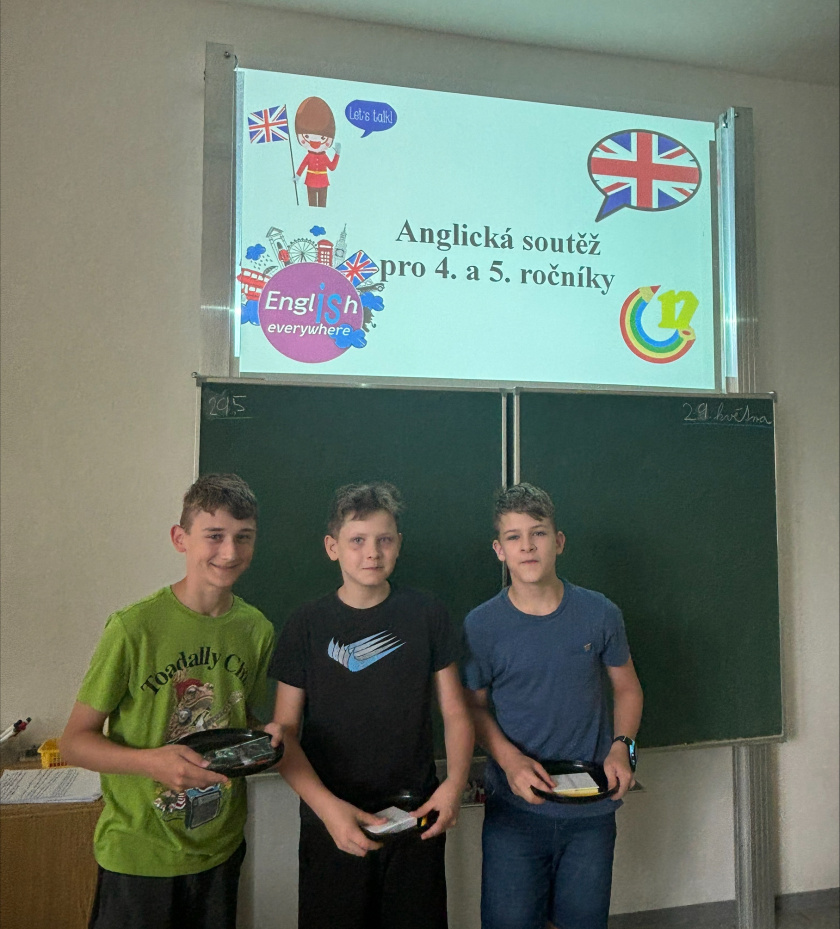 Ve středu 29.5. 2024 proběhla soutěž v anglickém jazyce pro první stupeň 4. a 5. ročníky. Z každé třídy byli vybráni dva žáci. Soutěžící si prověřili své jazykové dovednosti v několika oblastech. Soutěž byla rozdělena do pěti hlavních disciplín – představení sebe, hláskování, popis obrázku, ústní projev na téma – moje rodina a jednoduchý překlad.