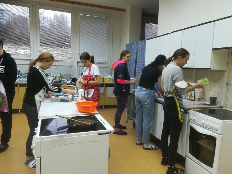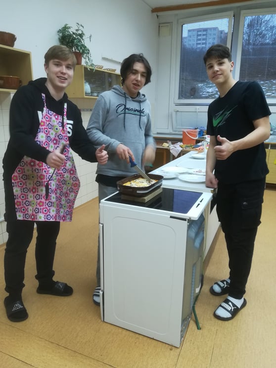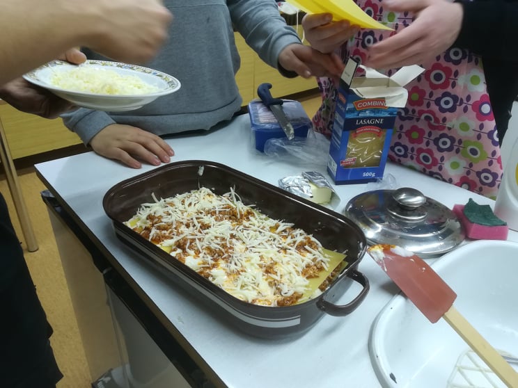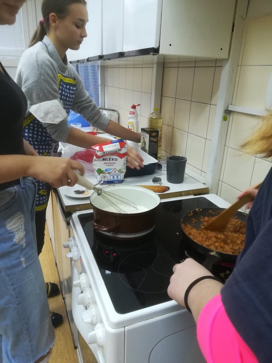 Sladké, sladké, sladké, sladké. Rohlíčky, linecké, perníčky, včelí úly a můžeme pokračovat ještě hodně dlouho. K jednomu ze symbolů Vánoc neodmyslitelně patří hromady cukroví a spousta práce a příprav. V rámci už skoro každoročního Vánočního pečení s našimi žáky jsme se tedy rozhodli udělat trochu změnu. Vzali jsme jedno z nejoblíbenějších jídel z naší jídelny a dobrovolníci z 9. A se s chutí pustili do jeho přípravy. Lasagne jsou relativně jednoduchý a rychle připravitelný pokrm, takže doufáme, že naši žáci ušetří čas u plotny svým maminkám a potěší je jejich přípravou. Jako odborný dohled se vaření zúčastnily také naše šikovné paní kuchařky a samozřejmě nemohly jinak, než kuchtíky pochválit!