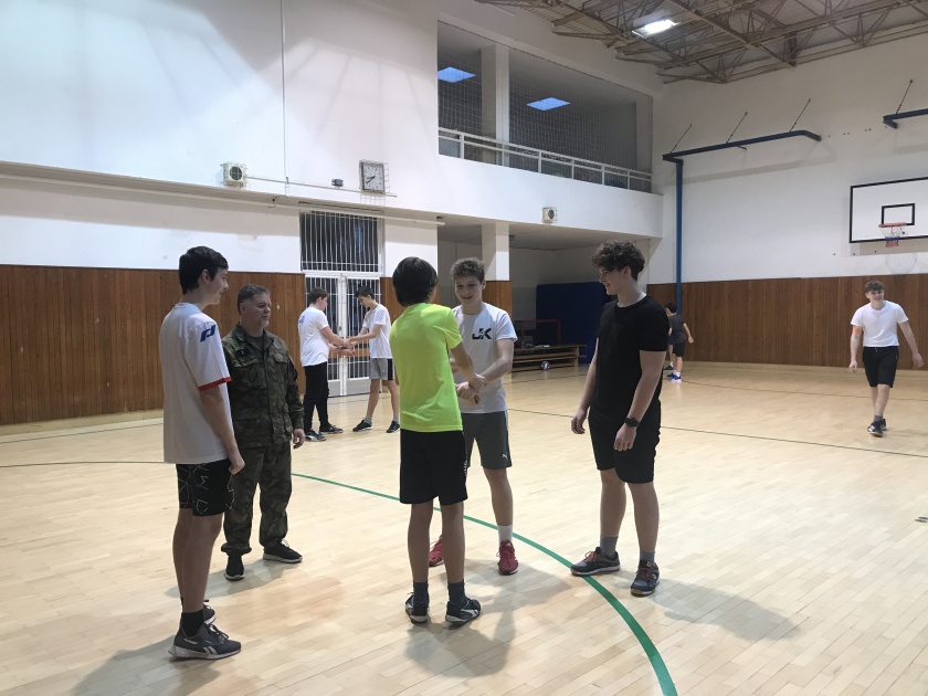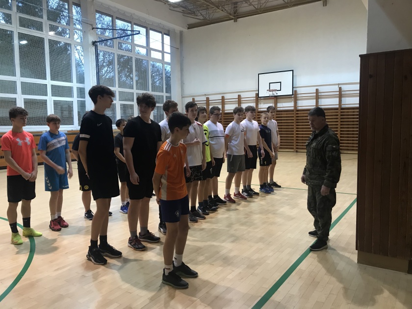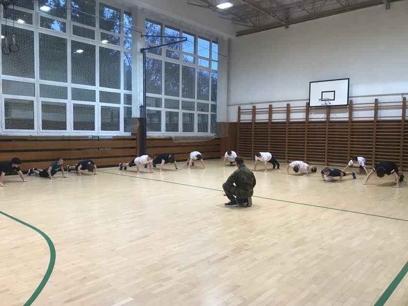 Minulý pátek k nám na školu zavítal instruktor Armády České republiky se svou ukázkovou hodinou sebeobrany. Kluci si prošli vojenskou rozcvičkou a základními armádními cviky jako dřepy a kliky. Poté jim instruktor vysvětlil základní prvky sebeobrany a sami na sobě si je vyzkoušeli.