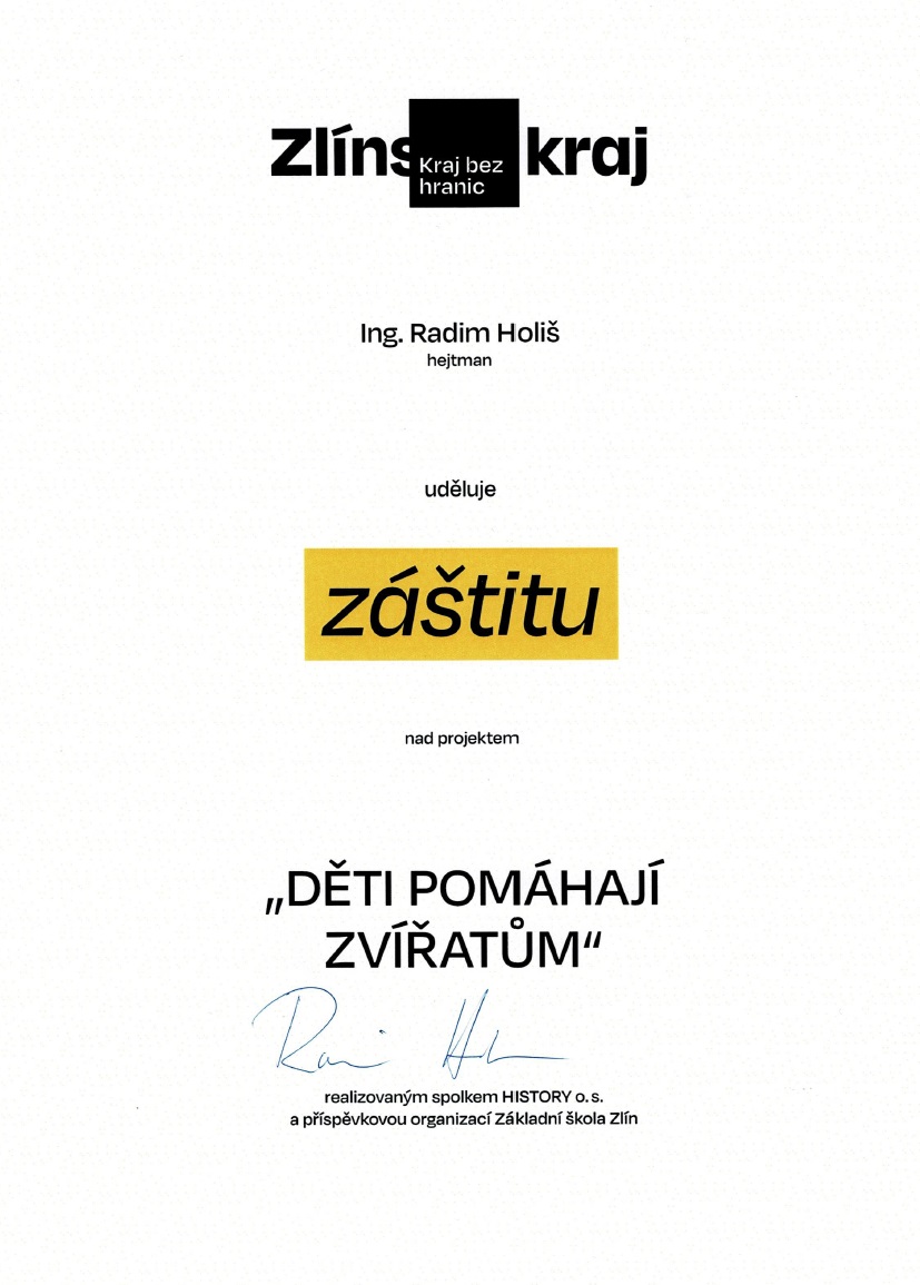 Záštita hejtmana ZK - Děti pomáhají zvířatům