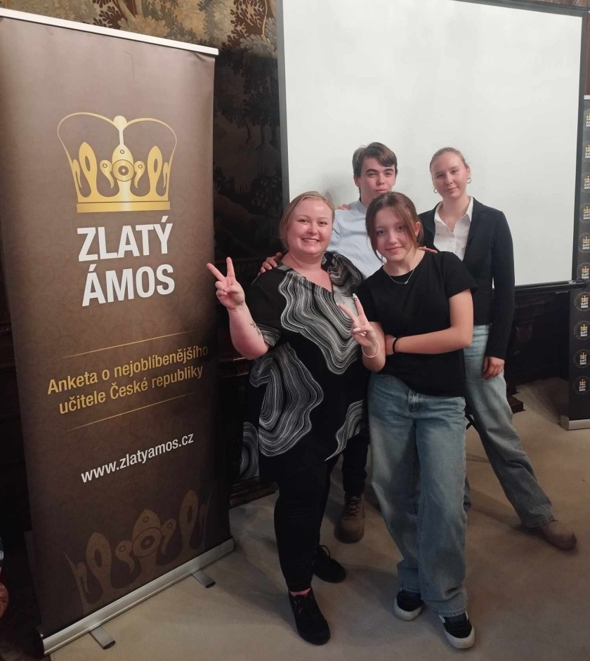 Ve čtvrtek 13. 2. jsem byla v Praze na Zlatém Ámosovi, kde jsem měla tu čest obhajovat naši úžasnou paní učitelku Terezu Dobšovou. Celá soutěž byla nejen zajímavá, ale také velmi inspirativní, protože jsem měla možnost vidět, kolik skvělých učitelů a oddaných studentů se do ní zapojilo.