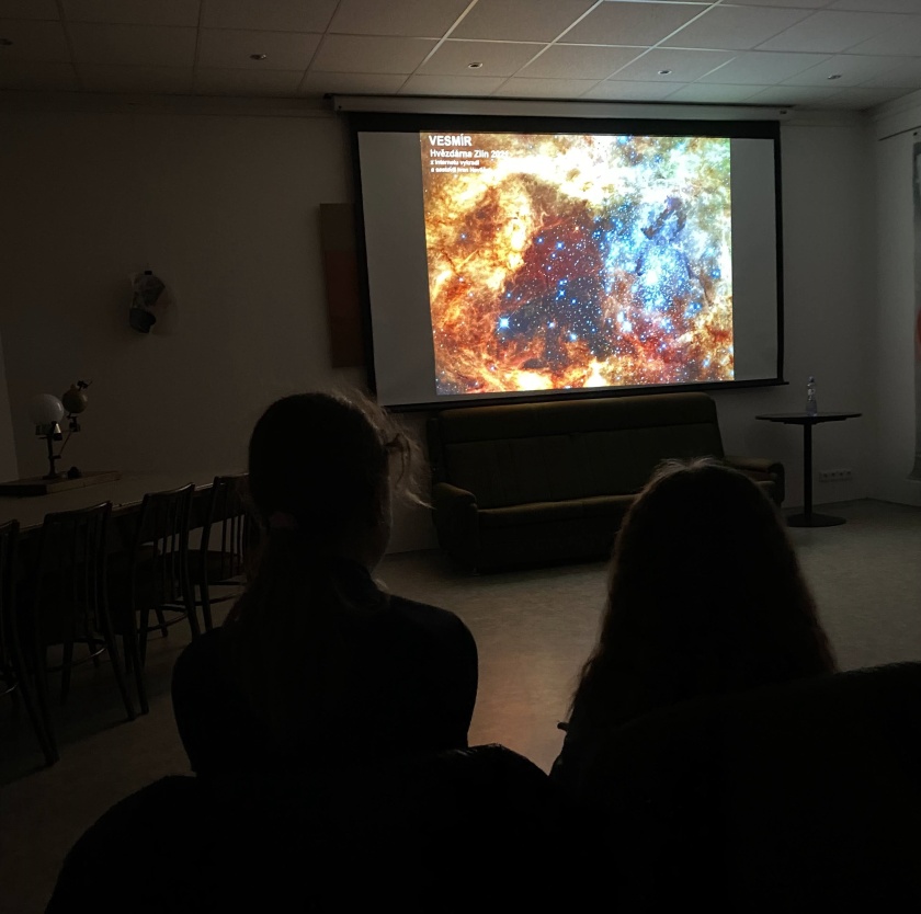….už nejsme – díky exkurzi ve zlínské hvězdárně! Pan „hvězdář“ Havlíček nás podrobně seznámil se Sluncem a planetami naší sluneční soustavy a také nám o nich pověděl mnoho zajímavostí.